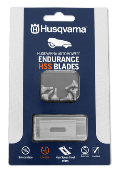 Husqvarna Automower® Endurance HSS-kniv är en kniv av stål med mjukare kärna och härdade kanter för extra skärpa och slitstyrka. Husqvarna Endurance-design ger skarpa eggar på alla fyra sidor av kniven och ett nytt materialval ger förbättrade skäregenskaper. Säkerhetskniv enligt standarder.