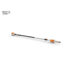 Mycket stark batteridriven stamkvistare. Arbetar tyst med låga vibrationer. För professionella användare till skötsel av träd, fruktodlingar eller park- och grönytor. Beskär träd, tar bort döda grenar och stormskador samt fruktträdsbeskärning. Utrustad med 1/4″ PM3 sågkedja, lätt motorhus med integrerad, kraftig grenhake för att få loss avklippta grenar som fastnat. Starkt, fyrkantigt teleskoprör med snabbjustering för exakt ansättning och precisa snitt. Totallängd 270 – 390 cm.