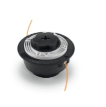 Tvåtrådigt trimmerhuvud för trimning av hela ytor och finputsning. Trimmertråden matas ut halvautomatisk genom att man slår trimmerhuvudet lätt mot marken under drift.
